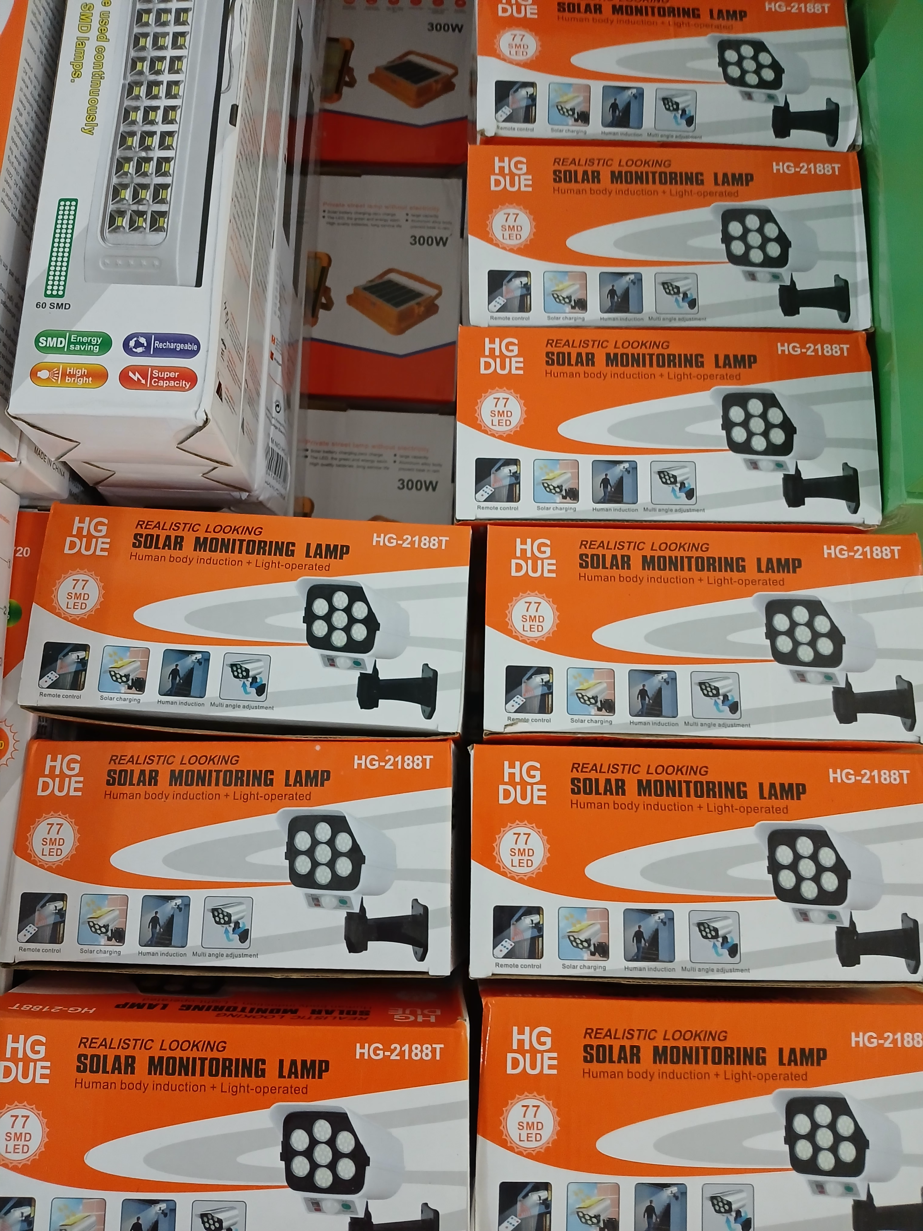 پروژکتور دوربینی خورشیدی مدل 2188T از سری چراغ های خورشیدی طرح دوربین مدار بسته می باشد.این چراغ ها دارای 7 ال ای دی cob می باشد که انرژی خود را از طریق دو باتری تعبیه شده درون آن تامین میکنند.دو باتری 18650 با ظرفیت 1200mAh درون محصول انرژی خود را به واسطه پنل خورشیدی تعبیه شده روی محصول تامین می کند.به واسطه تامین انرژی از باتری 3.7 ولتی می توان به آسودگی در فضای بیرونی و در معرض رطوبت و باران استفاده کرد.بنابراین محصول هیچ نیاز به سیم کشی و برق ندارد و انرژی خود را از نور تامین میکند.همچنین پروژکتور دارای RIP sensor + CDDS Night sensor می باشد و می تواند به صورت خودکار در شب روشن شود .سنسور حرکتی تعبیه شده روی چراغ تا فاصله 5 متری را پوشش می دهد و نحوه عملکرد آن در ادامه اشاره شده است.نحوه روشن و خاموش محصول به وسیله دکمه تعبیه شده یا کنترل همراه محصول می باشد.برد کنترل حدودا تا 7 متر می رسد.این محصول سه حالت روشنایی دارد که با کنترل یا دکمه آن تغییر پیدا می کند. حالت اول: که با یک بار فشار دادن دکمه یا MODE 1 روی کنترل فعال می شود که در هنگام شب و تاریکی با حرکت اجسام در مقابل آن چراغ روشن می شود(با تمام ظرفیت روشنایی) حالت دوم: دو بار فشار دکمه یا دکمه MODE 2 روی کنترل که هنگام شب با 30 درصد ظرفیت به صورت دائم روشن می شود و با حرکت اجسام با تمام ظرفیت خود روشن می شود. حالت سوم: سه بار فشار دکمه یا MODE 3 روی کنترل که در این حالت سنسور حرکتی غیرفعال شده و در هنگام شب با 60 درصد ظرفیت پروژکتور به صورت دائم روشن می ماند.این پروژکتور با هر بار شارژ کامل برای مثال در حالت سوم یا MODE 3 (بین 6 – 8 ساعت) می تواند تا 6 ساعت در زمان نیاز شما روشن بماند.ارتفاع پیشنهادی برای نصب این پروژکتور بین 2 تا ۳متر است.این پروژکتور ابعاد 20 در 7 را داراست و این محصول قادر به چرخش دستی 360 درجه می باشد.درون جعبه محصول خود چراغ، پیچ جهت نصب، کنترل، چایه و برگه راهنما به زبان انگلیسی تعبیه شده است.