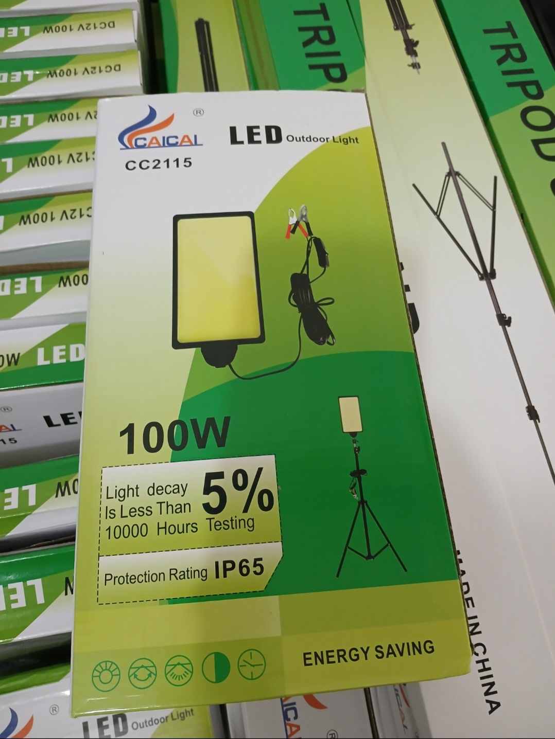 دارای پروژکتور ۱۰۰واتLED..ولتاژ ۱۲ ولت ..دارای کابل ۴ متری با انبرک وصل به باتری ماشین.۳ پایه با ارتفاع حدودا دو متری..بسیار با کیفیت و بانوردهی بالا
